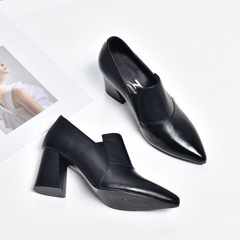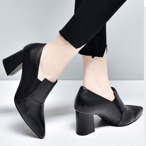Tacones altos simples de tacón grueso.